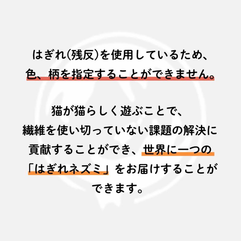 トレンドだけを追いかけるのではなく、こうした考え方で産地を盛り上げたいと思っていたところ、「DN・猫アースプロジェクト」の話が舞い込んできました。目指す未来・考え方が似ていることに共感いただき、小さな一歩でもまずは踏み出してみたいと快諾くださいました。安易なモノづくりはしないという信念と、すでに着手していたアップサイクル事業を活かし、麻特有のシャリ感のある涼し気なはぎれネズミが誕生しました。