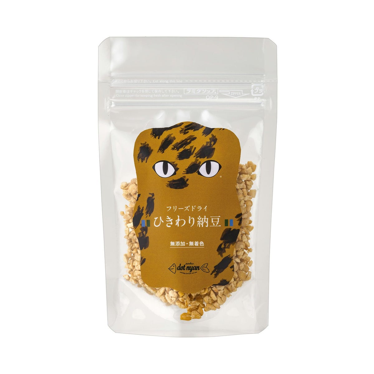 他の画像を見る ネコも納豆生活をおなかの強い味方を手軽に ドットにゃん フリーズドライ納豆(20g) ¥ 330 税込 栄養豊富な納豆は、ネコの身体にとても良い食品。実はネコの大好物でもあります。ドットにゃんでは"生きた納豆菌"を届けたいという想いから、良質な納豆をフリーズドライ加工しました。サラリとした手触りで与えやすい商品です。 カートに入れる お気に入りに登録する