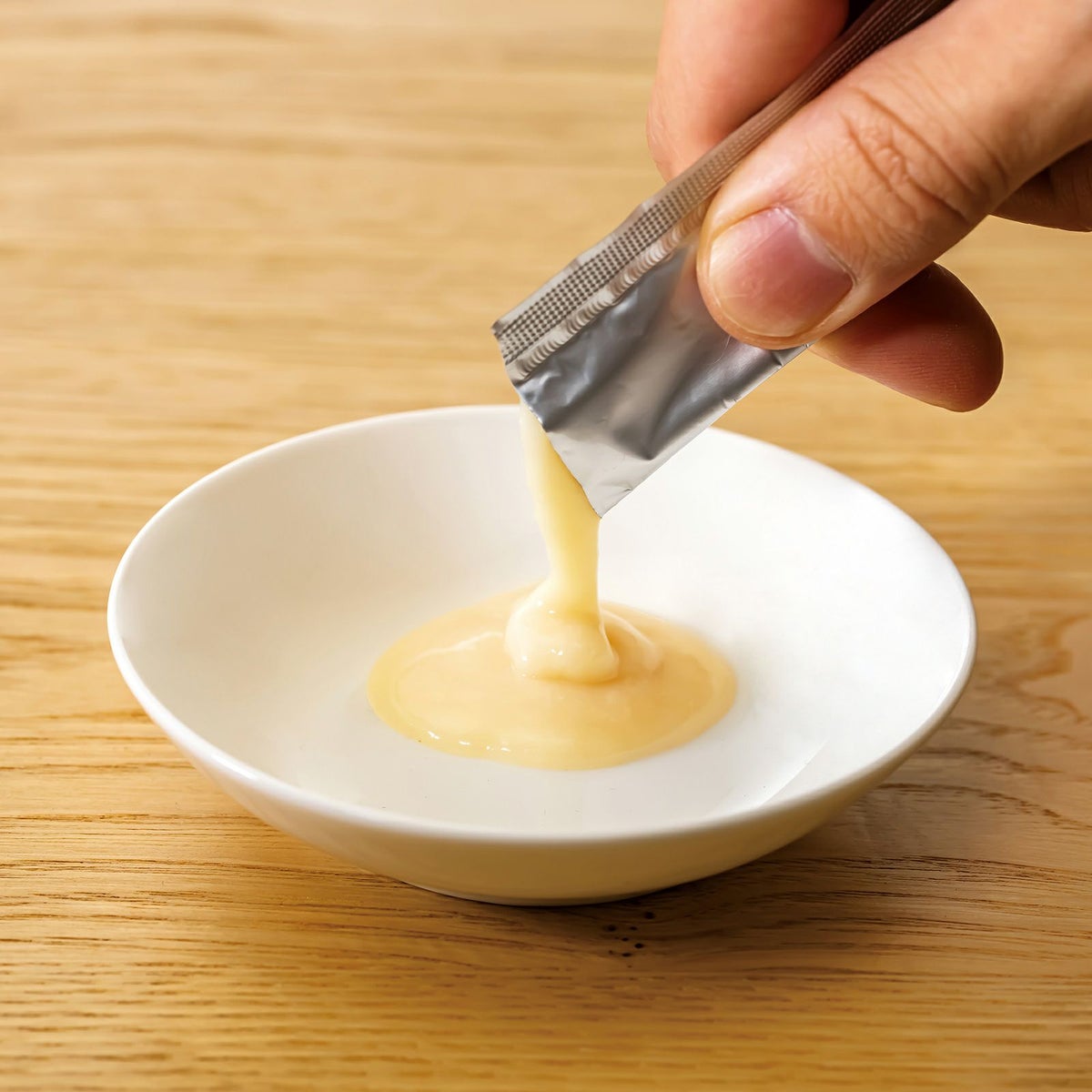 他の画像を見る 素材にこだわるドットにゃんが作ったらシンプルになりました! 少量のスティックタイプで常備食・携行食としても便利 ドットにゃん 鶏と米粉のピューレ5包 ¥ 550 税込 余計なものは加えないシンプルさを追求。ハーブ鶏の香りとお米の甘みで素材由来の優しい味に仕上げました。1包ずつレトルトで日持ちし、おなかに優しいペースト状はいつもあると安心。そのままあげたりフードにトッピングしたり、様々なシーンで安心して与えられる逸品です。 カートに入れる お気に入りに登録する