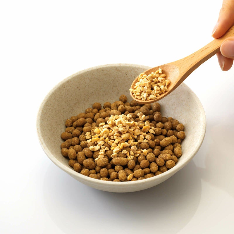 • 納豆の栄養成分の流出を防ぐため、食塩をわずかに使用しております。1日の給与目安量あたりに含まれる食塩はごく微量ですので、ご安心ください。