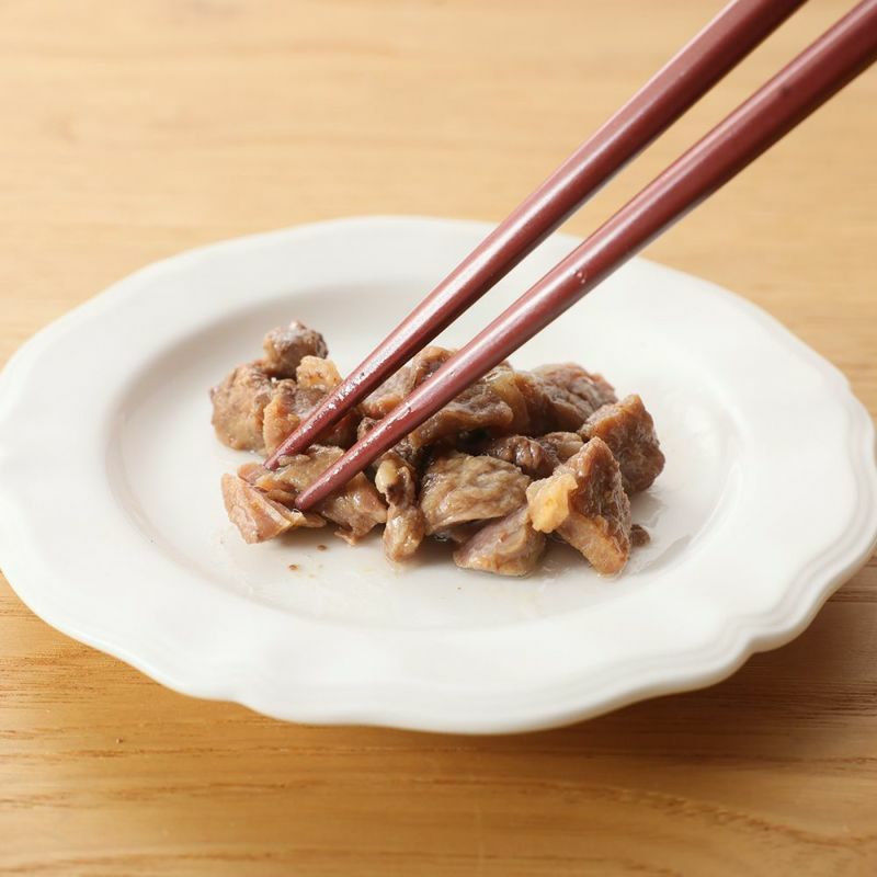 黒毛和牛を食べやすい大きさにカットした後、不活性ガス(スナック菓子やカツオ節のパッケージに使用されている無毒・無害の安全なもの) を充填した状態で調理し、肉の魅力がそのまま活きた、柔らか食感のステーキに仕上げました。レトルト加工することにより、保存料を添加することなく1年の保存期間を実現しています。