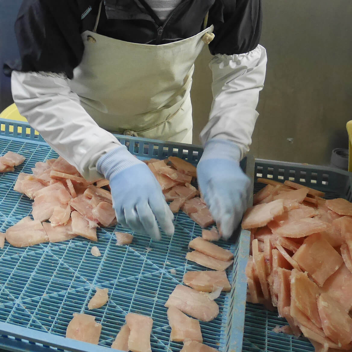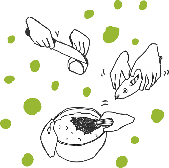 目で見て、嗅いで噛んで、音を聞いて食べて。